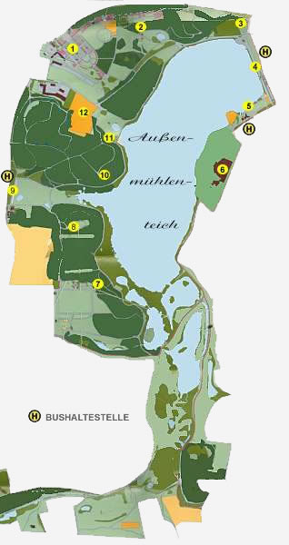 Info-Punkt 5 | Bootshaus, Gastronomie Es werden Tretboote vermietet. Parkplätze
