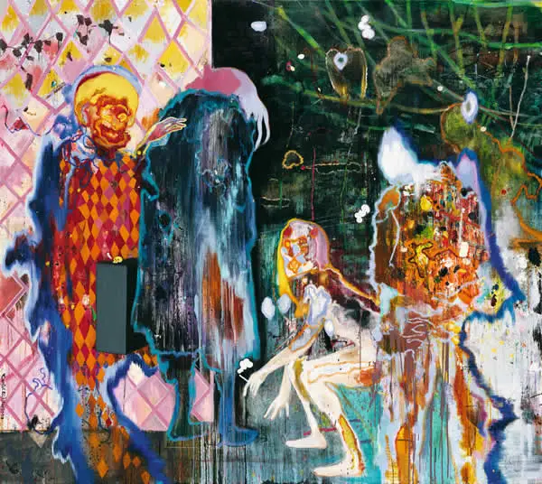 innerhalb der Lausen sein Orientierungsfeld stark erweitert. Dabei bedient er sich oft der Gestaltungselemente anderer Maler, um sie ungeniert gegeneinander ins Bild zu setzen. So wird der expressionistische Gestus durch eine brüchige Ornamentik, die Friedensreich Hundertwasser zum Vorbild nimmt, gezügelt.